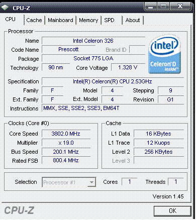 | Процессор (ядро) | Intel Celeron D (Prescott-256) |