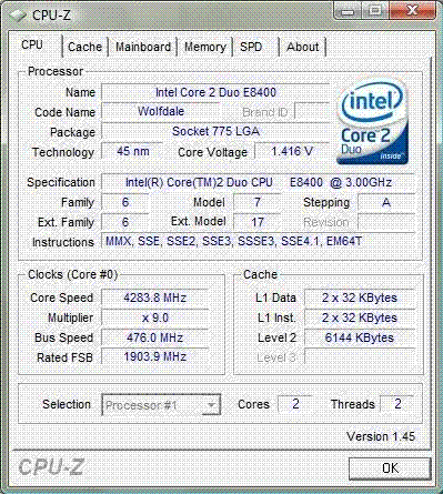 Результат разгона Intel Core 2 Duo (Wolfdale)