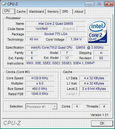 Результат разгона Intel Core 2 Quad (Yorkfield)
