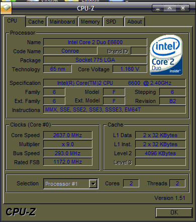 | Разгон, максимально стабильная частота (FSB x Ratio) | 2637 (293 x 9.0) |