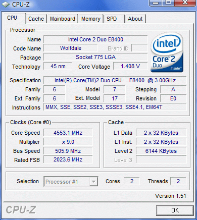 Результат разгона Intel Core 2 Duo (Wolfdale)