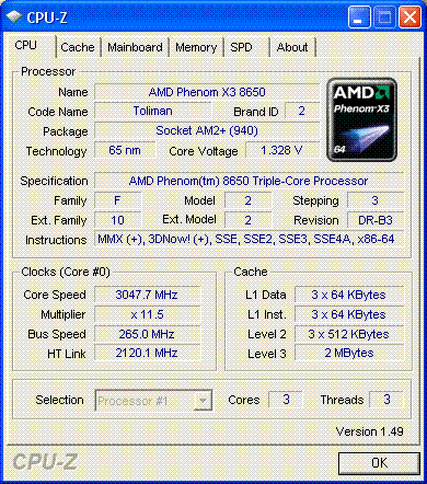 | Процессор (ядро) | AMD Phenom X3 (Toliman) |