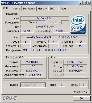 Результат разгона Intel Celeron (Conroe-512)