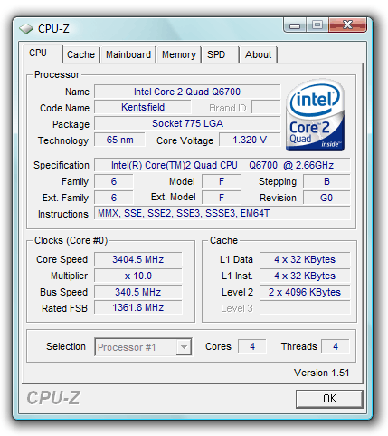 | Процессор (ядро) | Intel Core 2 Quad (Kentsfield) |