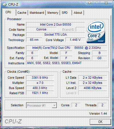 Результат разгона Intel Core 2 Duo (Conroe)