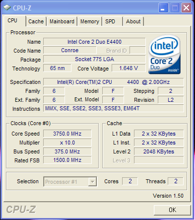 Результат разгона Intel Core 2 Duo (Conroe-2M)