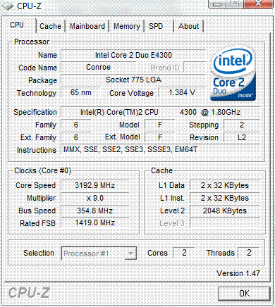 Результат разгона Intel Core 2 Duo (Conroe)