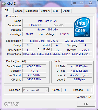 | Разгон, максимально стабильная частота (FSB x Ratio) | 4599 (219 x 21.0) |