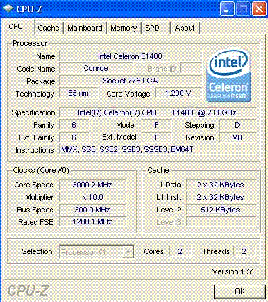 Результат разгона Intel Celeron (Conroe-512)