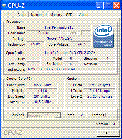 Результат разгона Intel Pentium D (Presler)