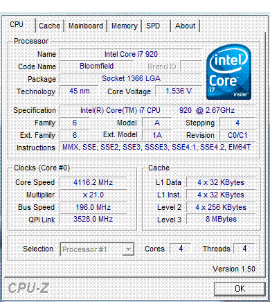 Результат разгона Intel Core i7 (Bloomfield)