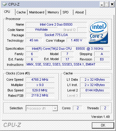 Результат разгона Intel Core 2 Duo (Wolfdale)