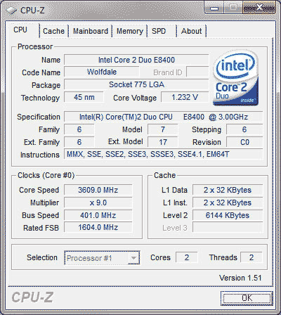 | Разгон, максимально стабильная частота (FSB x Ratio) | 3609 (401 x 9.0) |