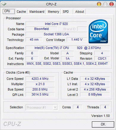 | Разгон, максимально стабильная частота (FSB x Ratio) | 4200 (200 x 21.0) |