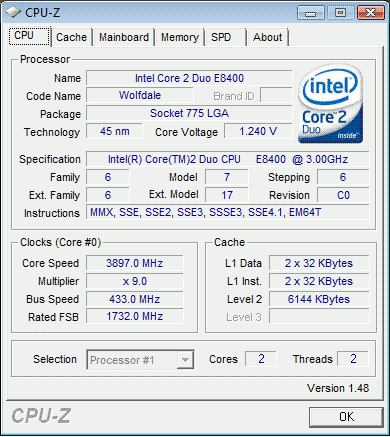 Результат разгона Intel Core 2 Duo (Wolfdale)