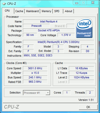 | Процессор (ядро) | Intel Pentium 4 (Prescott) |