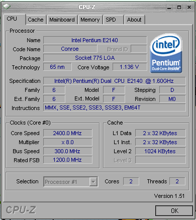 | Разгон, максимально стабильная частота (FSB x Ratio) | 2400 (300 x 8.0) |