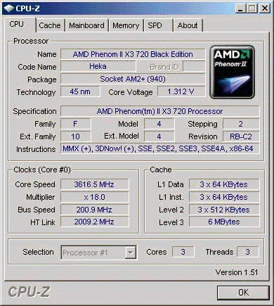 | Процессор (ядро) | AMD Phenom II X3 (Heka) |