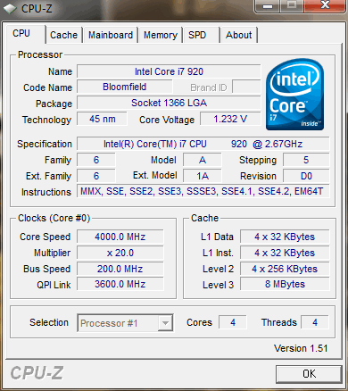 | Разгон, максимально стабильная частота (FSB x Ratio) | 4000 (200 x 20.0) |