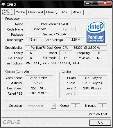 Результат разгона Intel Core 2 Duo (Wolfdale)