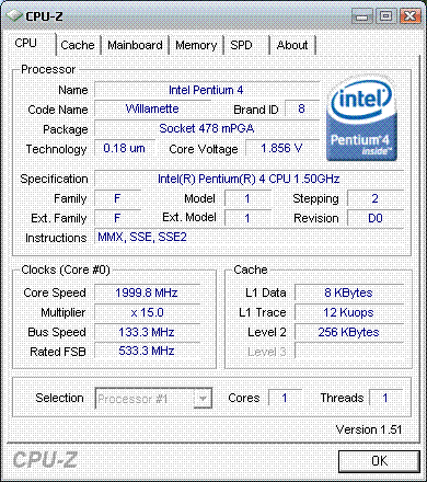 | Процессор (ядро) | Intel Pentium 4 (Willamette) |