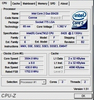 Результат разгона Intel Core 2 Duo (Conroe)