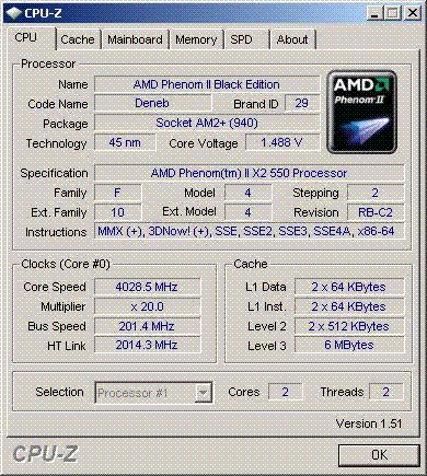 | Процессор (ядро) | AMD Phenom II X4 (Deneb) |