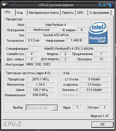 Результат разгона Intel Pentium 4 (Northwood)