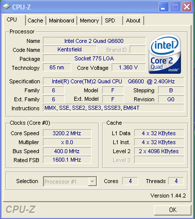 | Процессор (ядро) | Intel Core 2 Quad (Kentsfield) |