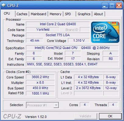 Результат разгона Intel Core 2 Quad (Yorkfield)