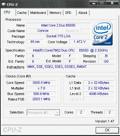 Результат разгона Intel Core 2 Duo (Conroe)