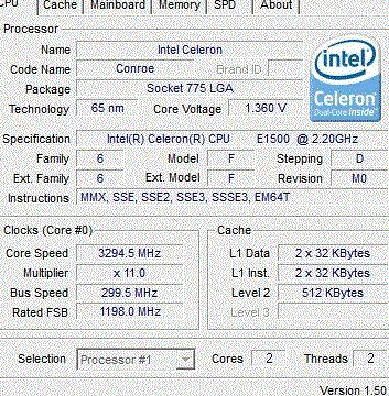 | Процессор (ядро) | Intel Celeron (Conroe-512) |