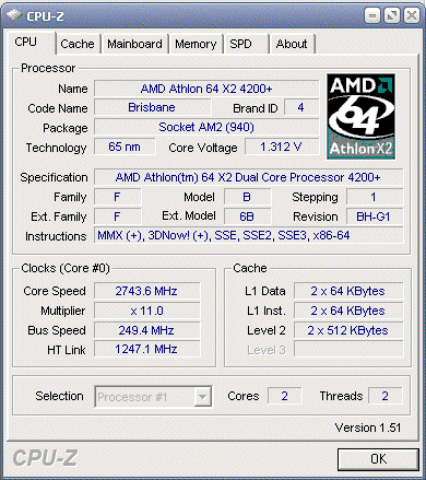 Результат разгона AMD Athlon 64 X2 (Brisbane)