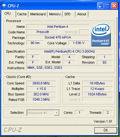 Результат разгона Intel Pentium 4 (Prescott)