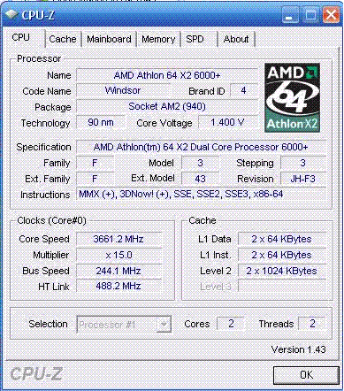 | Процессор (ядро) | AMD Athlon 64 X2 (Windsor) |