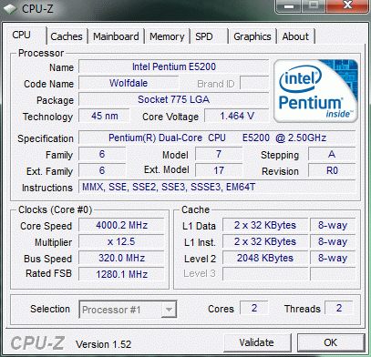 Результат разгона Intel Pentium Dual-Core (Wolfdale-2M)