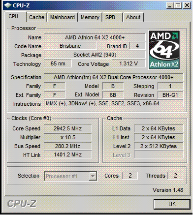 Результат разгона AMD Athlon 64 X2 (Brisbane)