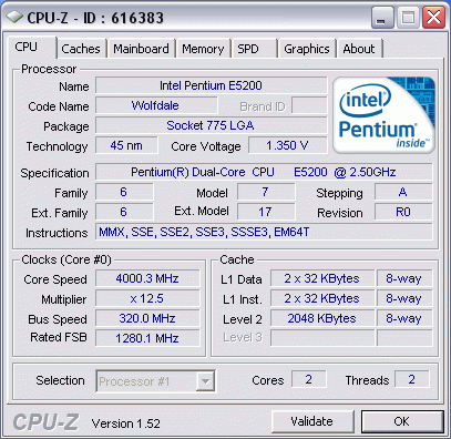 Результат разгона Intel Pentium Dual-Core (Wolfdale-2M)