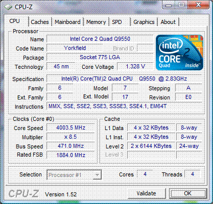 Результат разгона Intel Core 2 Quad (Yorkfield)