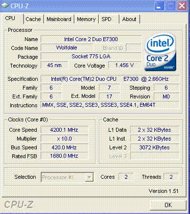 | Разгон, максимально стабильная частота (FSB x Ratio) | 4200 (420 x 10.0) |