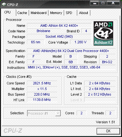 Результат разгона AMD Athlon 64 X2 (Brisbane)