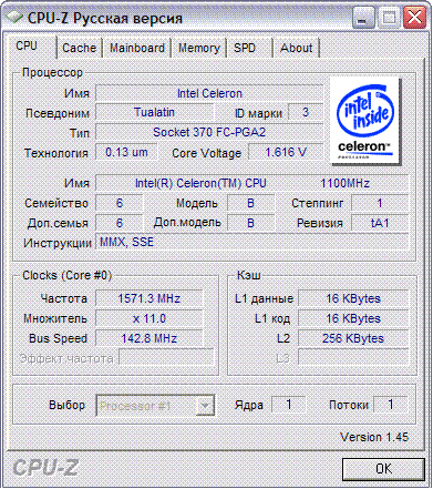Результат разгона Intel Pentium III (Tualatin)