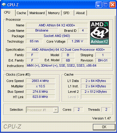 Результат разгона AMD Athlon 64 X2 (Brisbane)