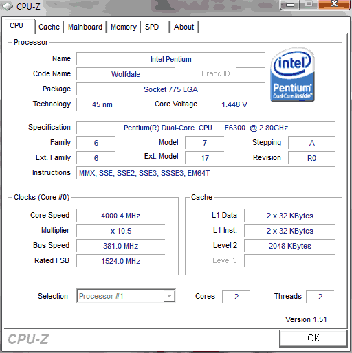 Результат разгона Intel Pentium Dual-Core (Wolfdale-2M)