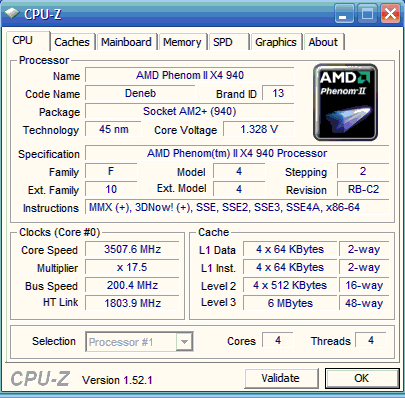 | Процессор (ядро) | AMD Phenom II X4 (Deneb) |