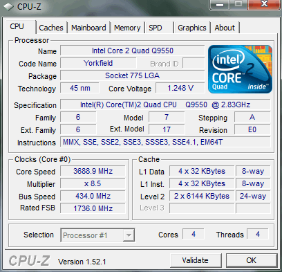 Результат разгона Intel Core 2 Quad (Yorkfield)