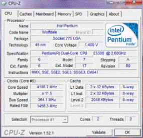 | Разгон, максимально стабильная частота (FSB x Ratio) | 4186 (364 x 11.5) |