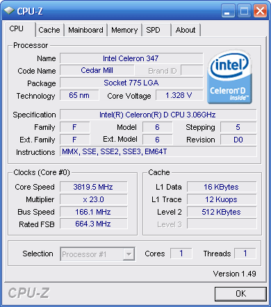 | Процессор (ядро) | Intel Celeron D (CedarMill-512) |
