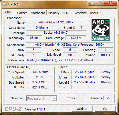 Результат разгона AMD Athlon 64 X2 (Brisbane)