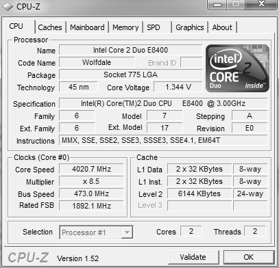 Результат разгона Intel Core 2 Duo (Wolfdale)
